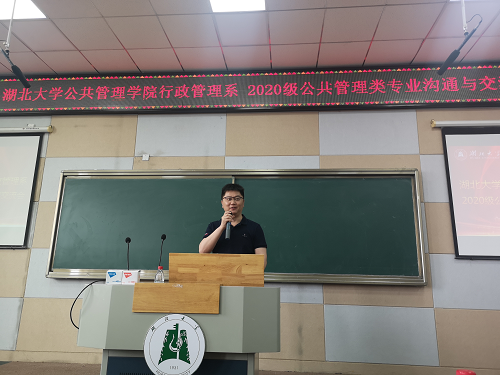 為增強2020級公共管理類學生的專業(yè)認知,2021年5月11日上午,行政管理系于湖北大學通識教育學院B300教室舉行公共管理專業(yè)溝通交流會。學院院長陳榮卓、副院長張小進、教師第一支部書記方伶俐、行政管理系主任向良云、副主任陳娟、土地資源管理系主任王振偉及全體2020級公共管理類學生參加。