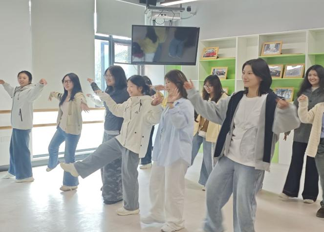 (24級(jí)學(xué)姐對(duì)25級(jí)新生進(jìn)行舞蹈教學(xué))