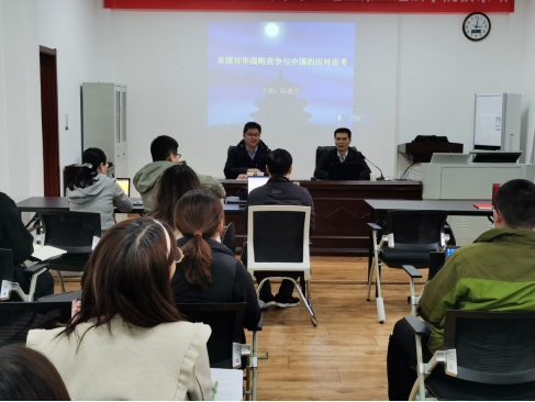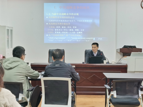 2021年11月28日下午,武漢大學(xué)政治與公共管理學(xué)院副院長阮建平教授蒞臨湖北大學(xué)公共管理學(xué)院,開展了題為“美國對華戰(zhàn)略競爭與中國的應(yīng)對思考”的學(xué)術(shù)講座。本次講座由陳榮卓院長主持,政治學(xué)系部分教師和國際事務(wù)與國際關(guān)系專業(yè)學(xué)生參加了本次學(xué)術(shù)活動。