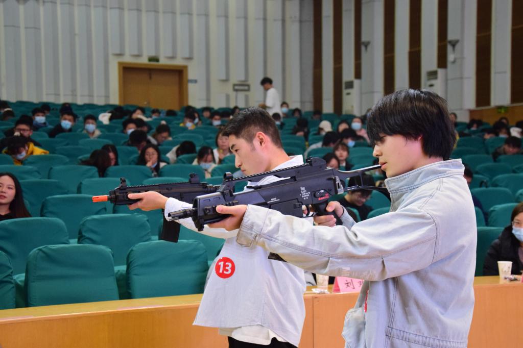 最后輪次為射擊打靶。每位同學(xué)持水彈槍,站立在距墻壁3-5米遠(yuǎn)的地方射擊標(biāo)靶。在兩輪比賽過后,根據(jù)成績(jī)進(jìn)行排名。最終,來自公共管理學(xué)院2020級(jí)公共管理類專業(yè)成豪杰同學(xué)取得了冠軍。