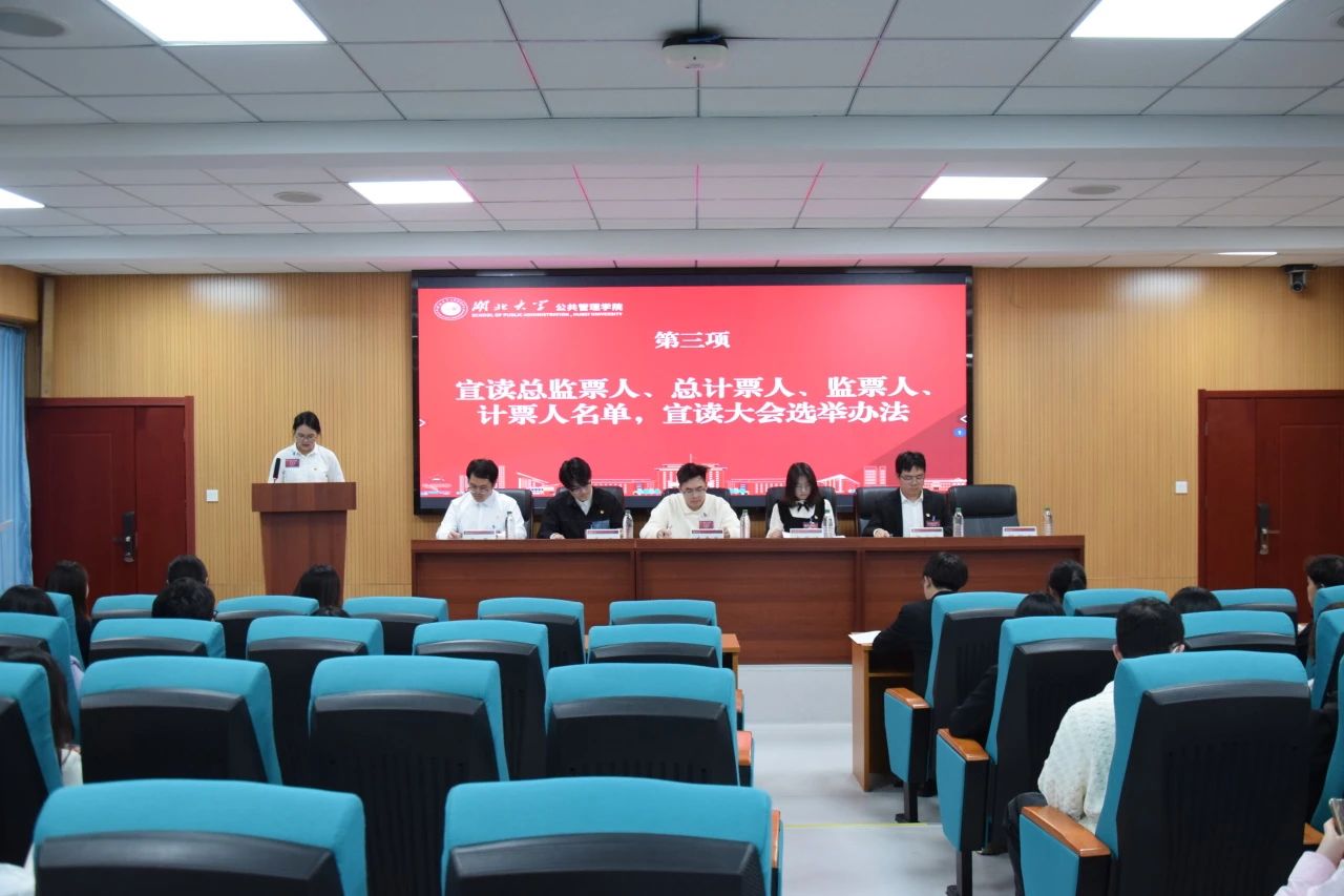 緊接著,大會通過了監(jiān)票人、計票人名單并宣讀共青團湖北大學(xué)公共管理學(xué)院委員會委員候選人。經(jīng)過公平、公開、公正的投票、計票,會議選舉產(chǎn)生并宣讀了新的共青團湖北大學(xué)公共管理學(xué)院委員會委員。