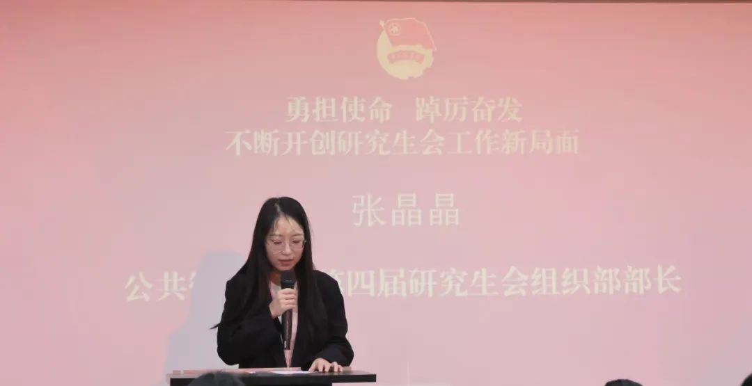 會(huì)議開始,第四屆主席團(tuán)代表張晶晶分享了自己一年來的工作心得,并鼓勵(lì)同學(xué)們?cè)诠ぷ髦幸3謽酚^進(jìn)取的心態(tài),勇于面對(duì)和解決問題,積極投身到研究生會(huì)的各項(xiàng)工作,為團(tuán)隊(duì)注入更多的活力和創(chuàng)意;第五屆研究生會(huì)主席史延超匯報(bào)了今后的工作計(jì)劃和目標(biāo),并表示將在未來的工作中加強(qiáng)學(xué)習(xí),不斷探索工作新模式和新方法,提升服務(wù)意識(shí),深入班級(jí),用心用情為研究生做實(shí)事。