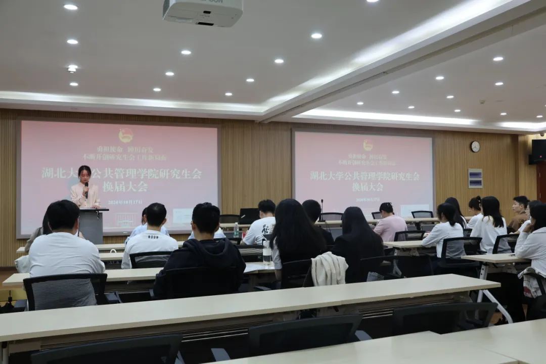 2024年10月7日,公共管理學(xué)院研究生會(huì)換屆大會(huì)在逸夫樓C2014報(bào)告廳舉行。學(xué)院黨委副書記余歡、團(tuán)委負(fù)責(zé)人李鑫澤,學(xué)院第四屆、第五屆研究生會(huì)全體成員出席本次會(huì)議,會(huì)議由第五屆研究生會(huì)成員李夢(mèng)毅主持。