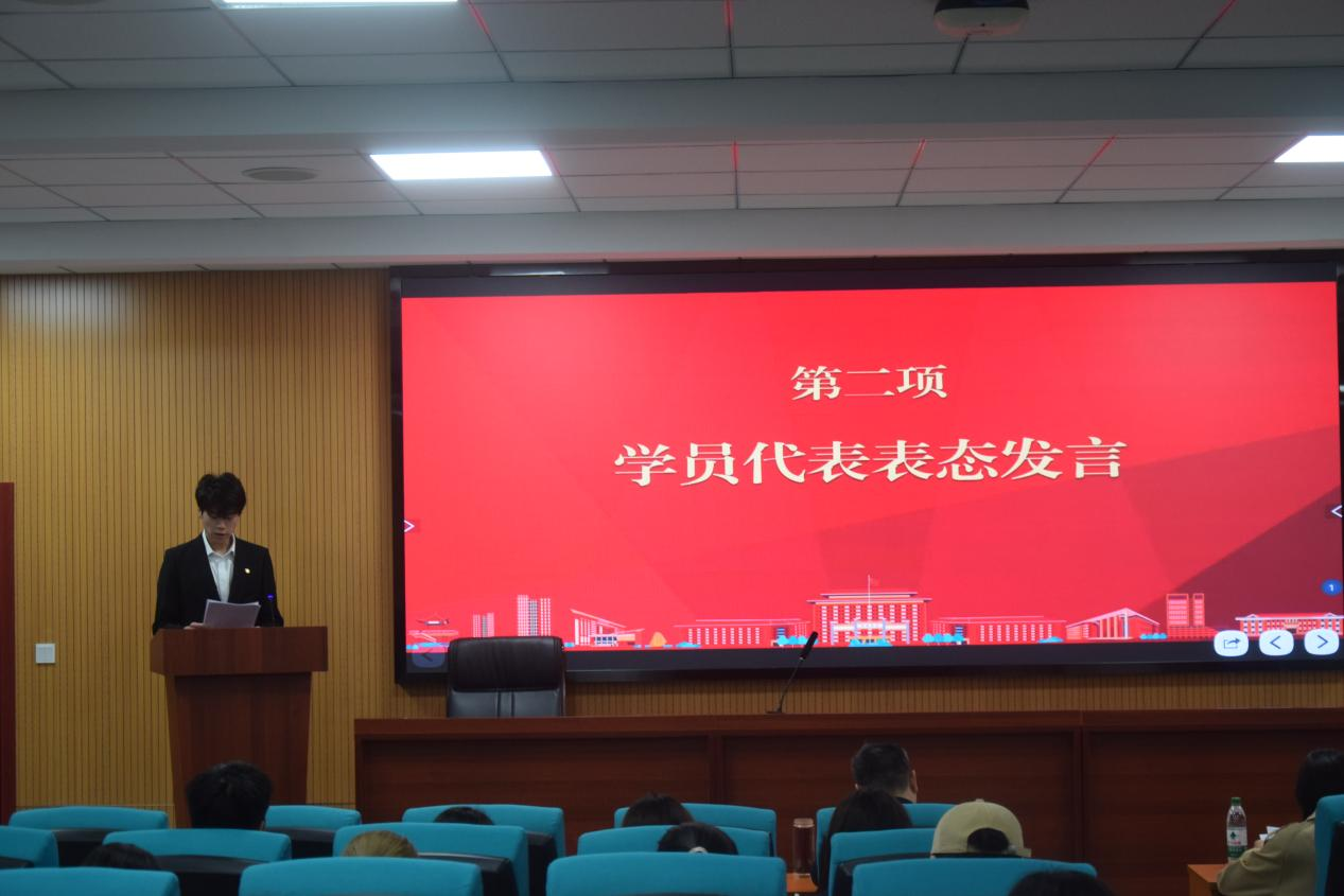 隨后學員代表上臺發(fā)言,鄭重表達了全體學員向黨組織靠攏的堅定決心與奮進姿態(tài)。他表示,全體學員將以此次培訓為契機,潛心鉆研黨的創(chuàng)新理論,自覺錘煉政治品格,在理論學習中堅定理想信念,在日常實踐中踐行初心使命,努力成為同學們身邊的先鋒模范。