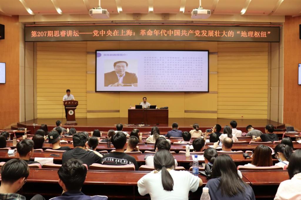 賀東航教授以“黨中央在上海:革命年代中國(guó)共產(chǎn)黨發(fā)展壯大的‘地理樞紐’”為題,從“中國(guó)共產(chǎn)黨在上海的成立”、“1931年的上海黨中央”、“追尋周恩來(lái)足跡,在感悟歷史中前行”等方面展開(kāi)講授。他指出,土地革命戰(zhàn)爭(zhēng)時(shí)期,黨中央受到反動(dòng)勢(shì)力的圍剿,由許多交通站“點(diǎn)”和眾多交通員“線”串聯(lián)起來(lái)的“紅色交通線”,是上海黨中央與蘇區(qū)之間進(jìn)行信息傳送、采辦運(yùn)輸物資、人員往來(lái)的重要交通線路,大批中央領(lǐng)導(dǎo)人和高級(jí)干部正是通過(guò)“紅色交通線”上的交通員護(hù)送,得以進(jìn)入蘇區(qū)。他表示,革命的勝利離不開(kāi)他們的默默付出和無(wú)私奉獻(xiàn),同時(shí)也充分彰顯了周恩來(lái)同志運(yùn)籌帷幄和帶領(lǐng)隱蔽戰(zhàn)線無(wú)名英雄們?cè)⊙祽?zhàn)的卓著功績(jī)。