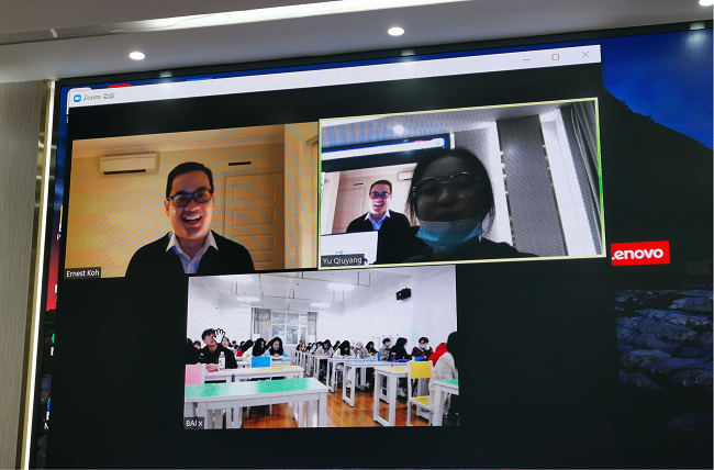 (圖7:2020級學(xué)生張?zhí)N含與Ernest博士交流)