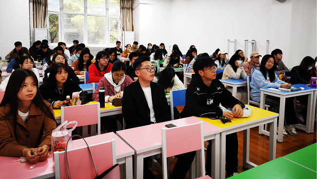 (圖1:俞秋陽老師向同學(xué)們介紹講座專家)