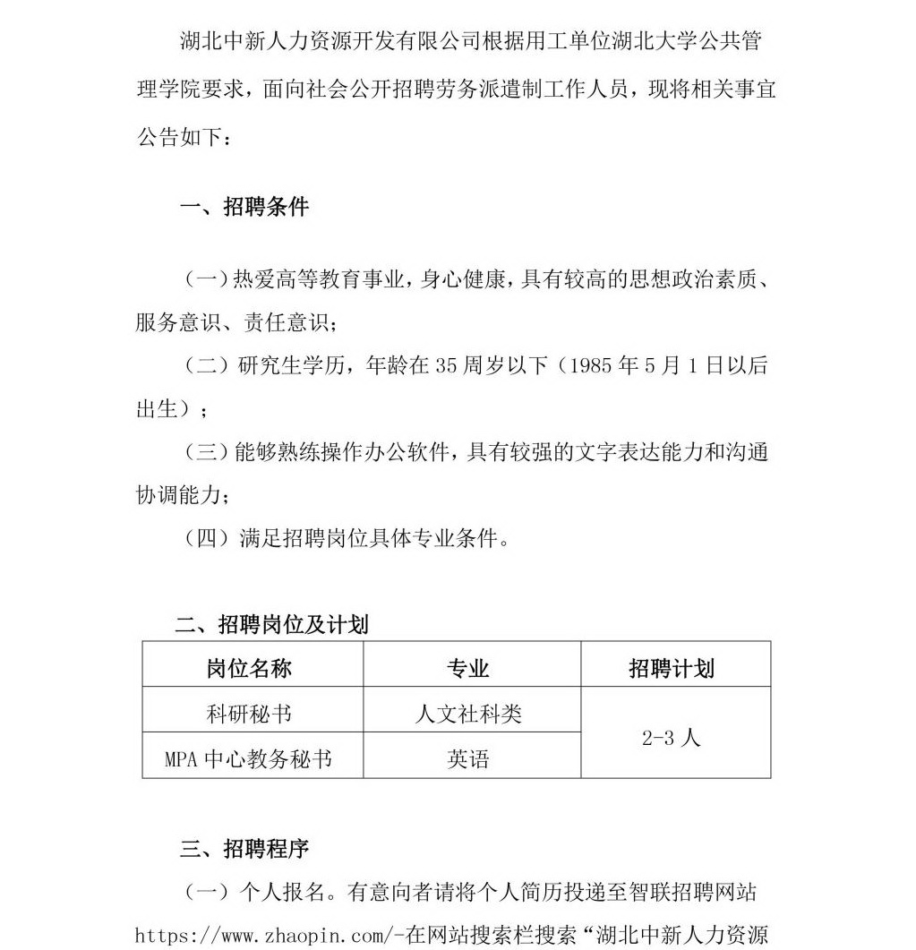 湖北大學(xué)公共管理學(xué)院招聘工作人員公告